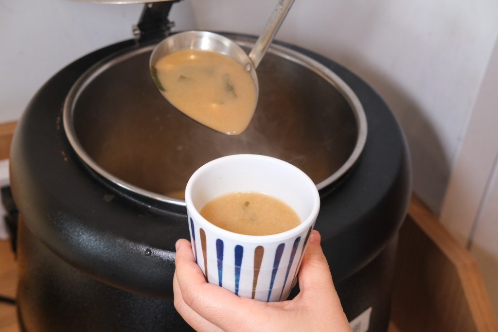 ▼【嵐山嵐山熟成牛かつ專売】主餐的米飯、湯品和飲品,都是可以無限取用吃到飽~