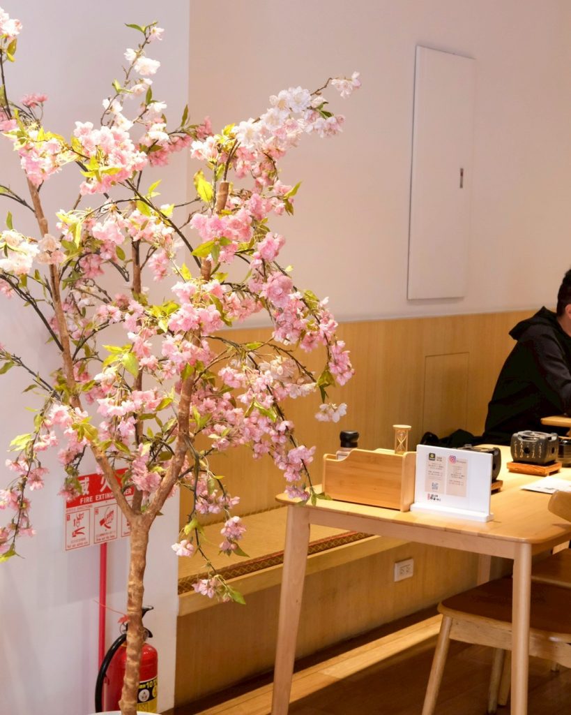 ▼【嵐山嵐山熟成牛かつ專売】用餐環境充滿日式氛圍,木質調的空間溫馨感十足,搭配夢幻的花卉裝飾,讓人彷彿就像來到日本般~