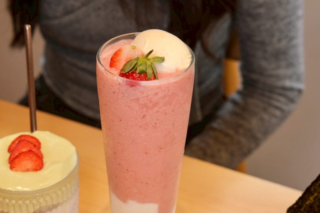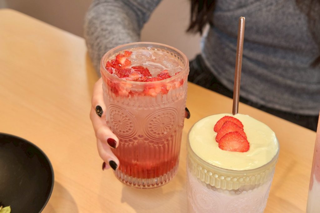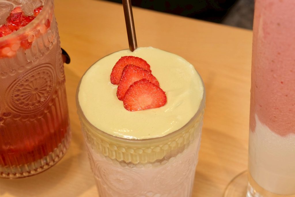 ▼冬季草莓季推出的三杯飲品系列,讓人忍不住少女心噴發,草莓冰沙非常香甜順口,頂頭還有冰淇淋加分點綴,草莓歐蕾覆蓋上一層厚厚奶蓋,草莓與鮮乳完美融合超級讚;草莓氣泡飲喝得到滿滿果肉,沁涼口感真的會上癮!