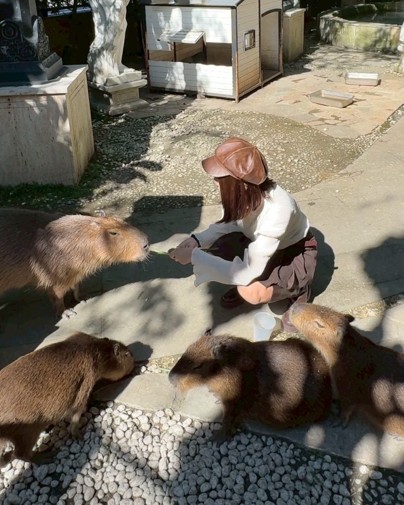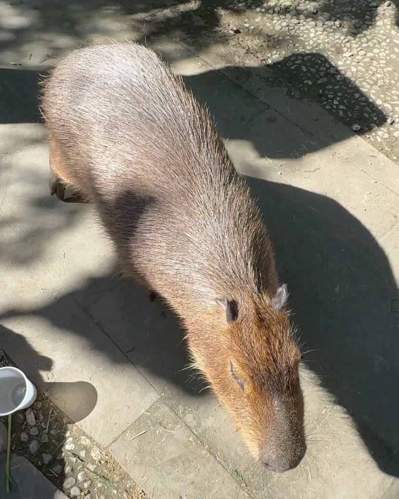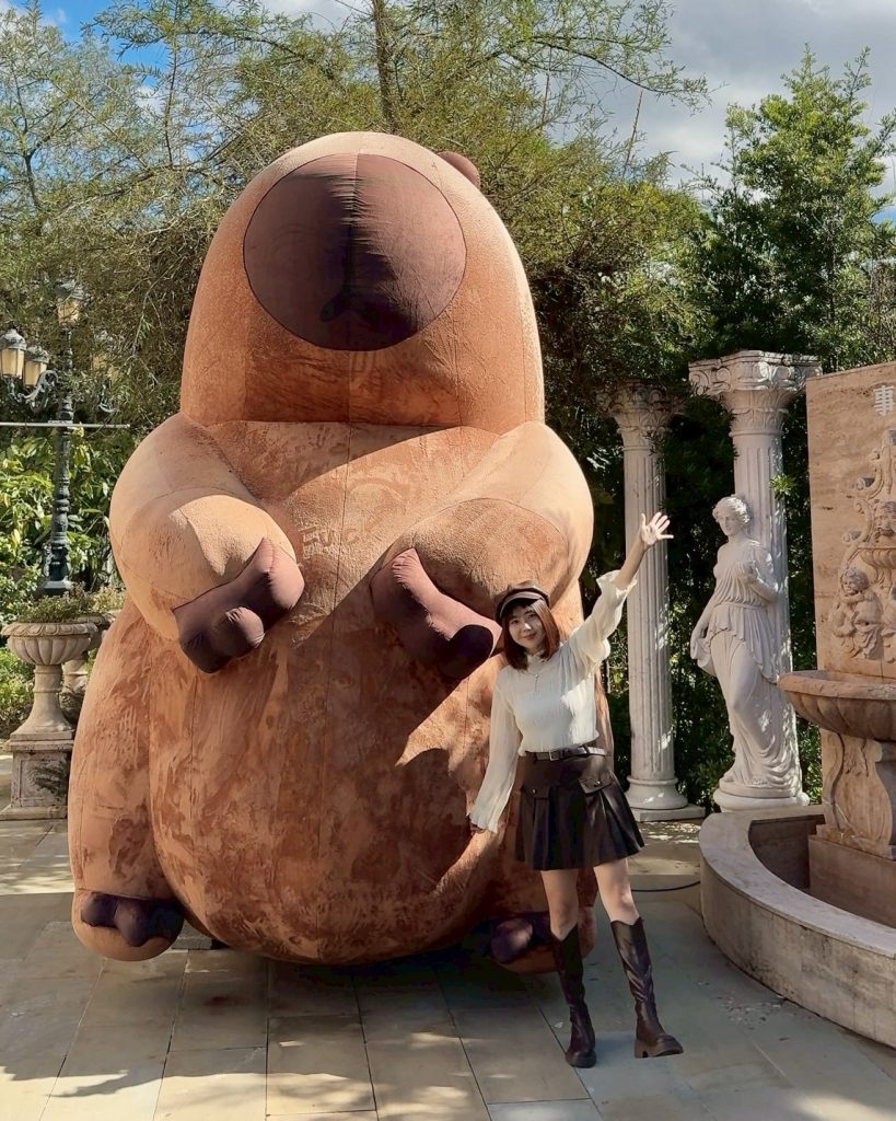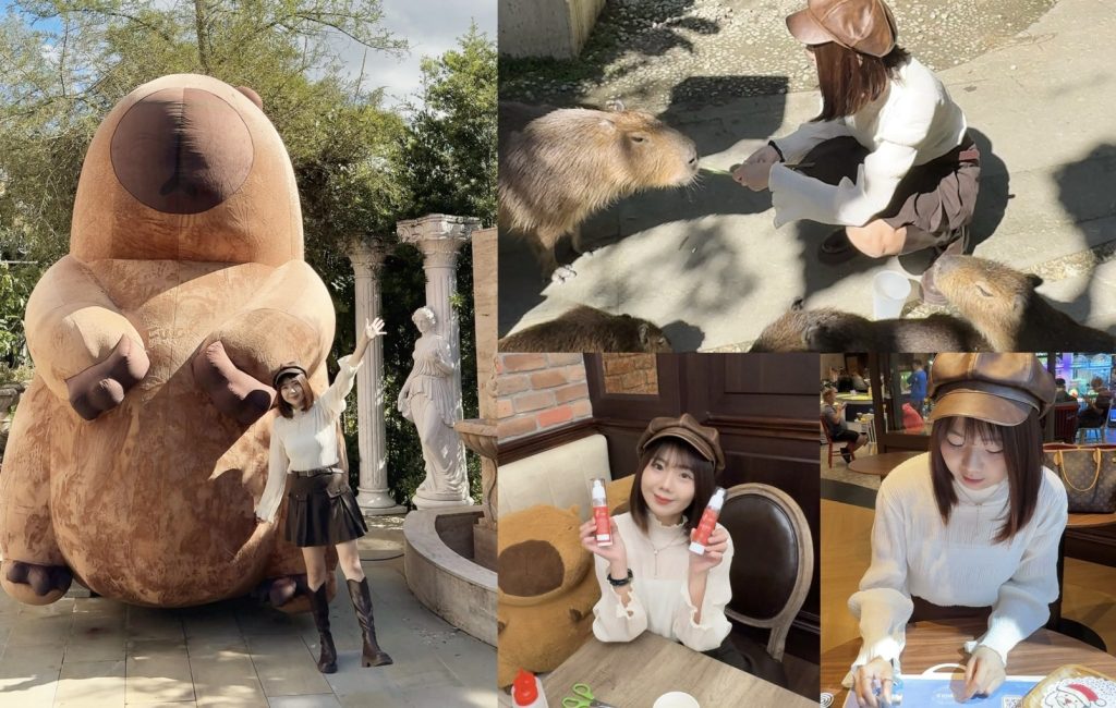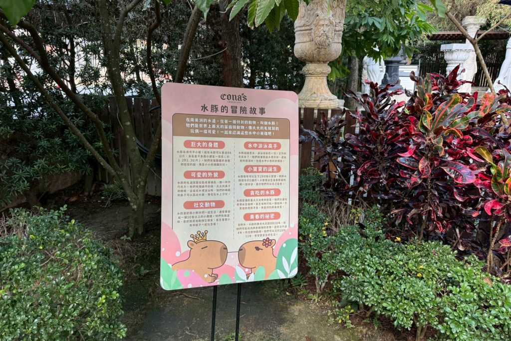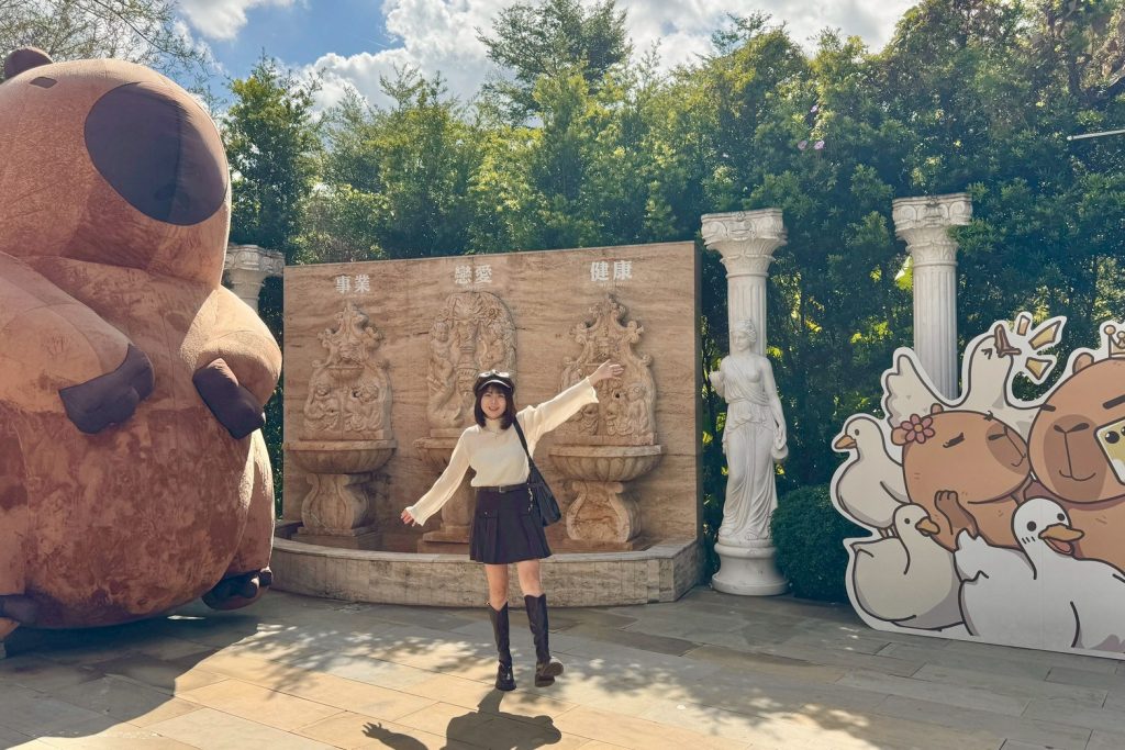 ▼門口有超大水豚娃娃可以拍照,園區更可以近距離和水豚互動,由水豚爸爸志明和媽媽春嬌,今年 7 月誕生四隻小寶寶:平安、囍樂、吉祥、如億,總共有六隻可愛水豚,拍照超萌必打卡 !