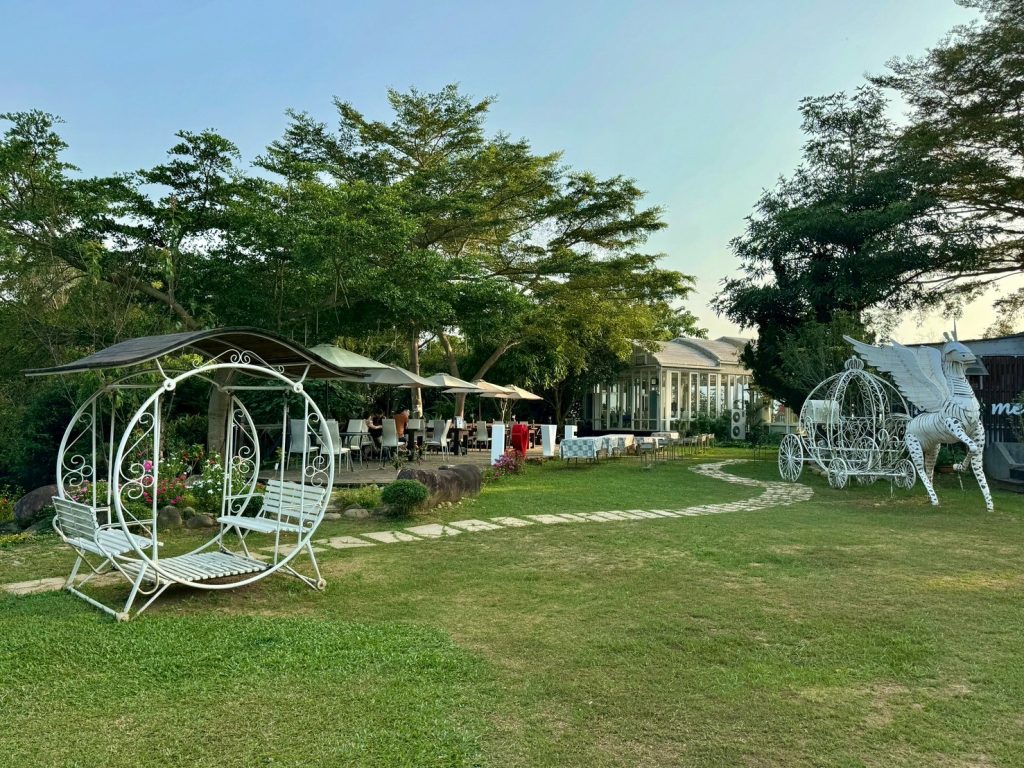 ▼【鳥語花香庭園山莊】的園區腹地超級大,共分為餐飲、住宿、烤肉、動物園四大區域,寬敞的綠草皮能讓小朋友自由奔跑,還有搖椅玩耍及網美打卡點,滿足全家大小不同的需求!