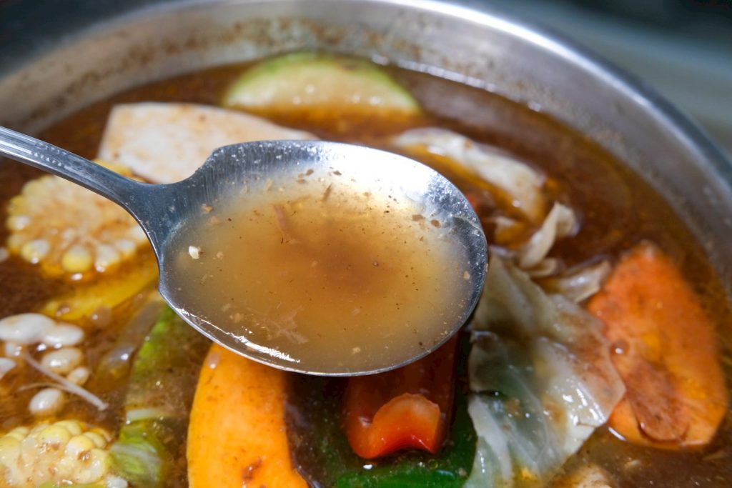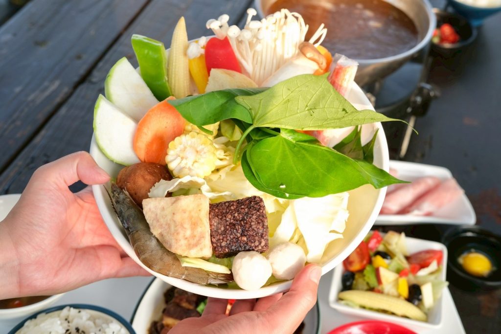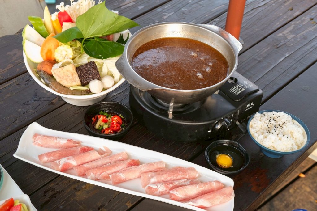 ▼超澎派的牛肉沙茶火鍋,包含米飯、雞蛋、菜盤和肉盤,遵循古法製成鮮甜高湯,再搭配獨門沙茶喝起來超夠味,無論涮肉或式蔬菜都很適合~