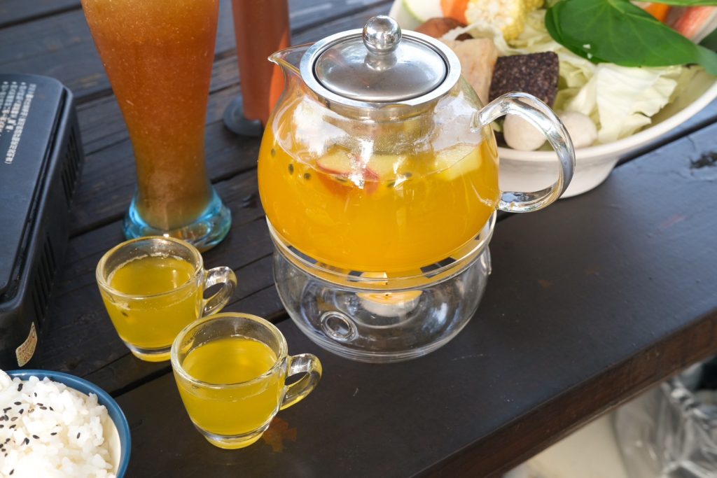 ▼它們家的手搖讓我大大驚豔,完勝外面許多飲料店的水準,熱飲的四季水果茶會以整壺呈現,搭配兩個小杯子超級可愛,加入多樣豐富的季節水果,喝起來很夠味順口,滿是迷人的鮮美果香; 檸檬冬瓜茶酸甜中有著迷人冬瓜香,夏天喝起來消暑又止渴!
