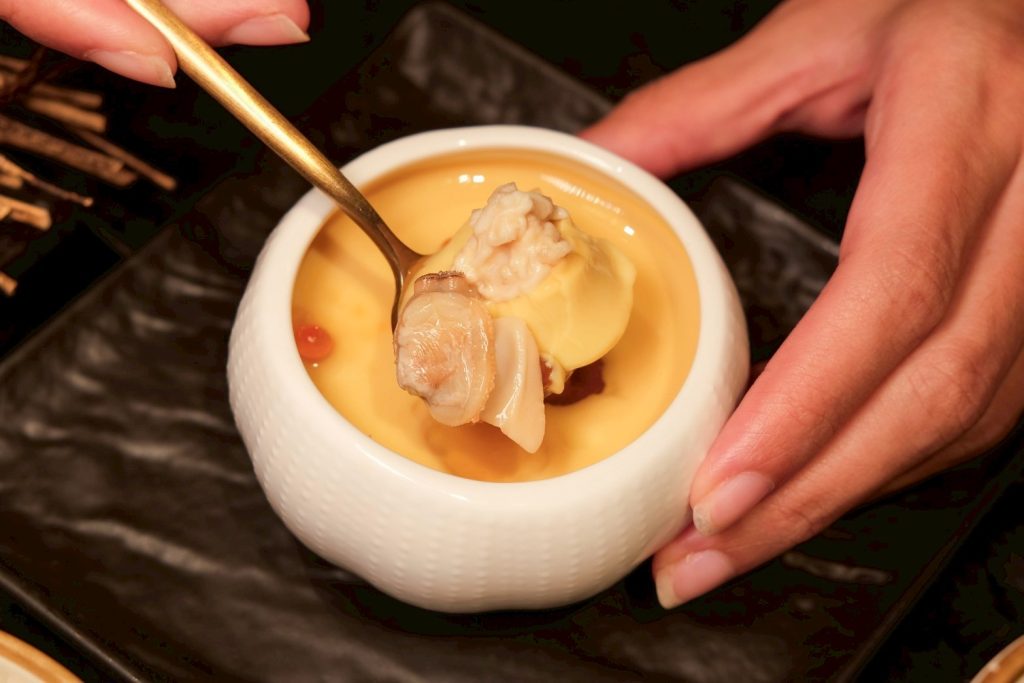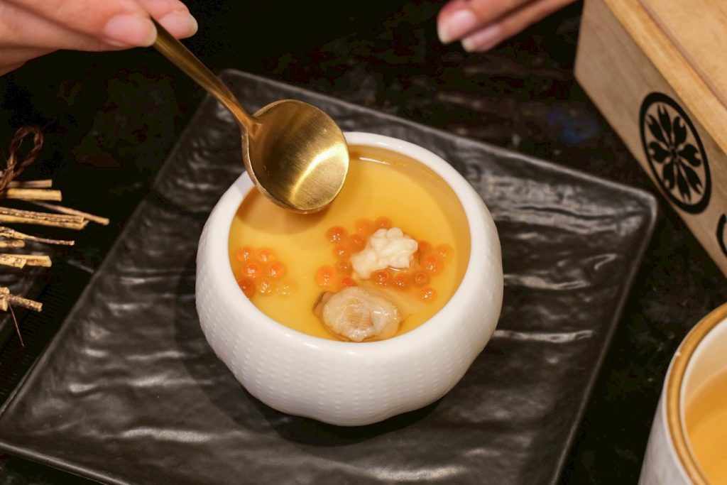 ▼茶碗蒸裡頭藏著奢華驚喜,選用細緻的高湯打底,蒸出如豆腐般的迷人口感,搭配鮭魚卵和蛤蠣很加分。