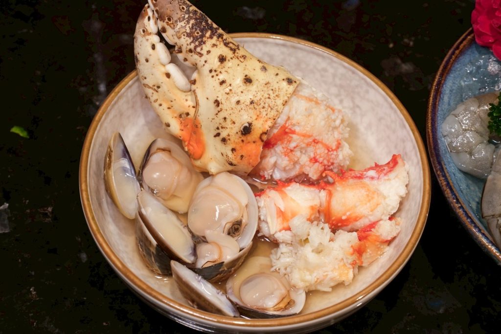 ▼帝王蟹海鮮盤提供肥美的蟹螯部位,已貼心去殼煮熟後即可享用,肉質細緻充滿海鮮甜味,另外蛤蠣更是飽滿多汁,吃起來也毫不遜色欸!