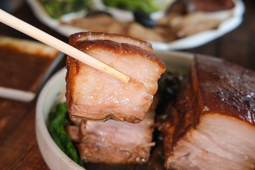 ▼我最愛的南門市場 紹興梅干封肉,將五花肉慢火燉煮到入口即化,搭配紹興酒及梅干菜提香,肉感彈性好咬,鹹香甘甜層次豐富~
