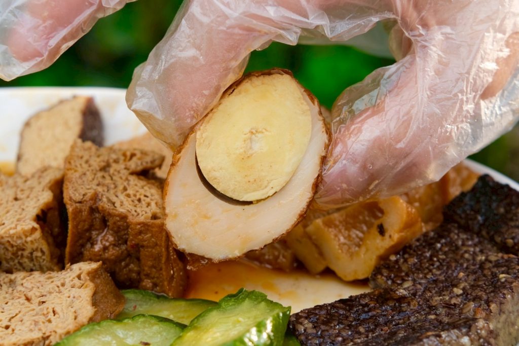 ▼第一次在滷味里吃到炸蛋! 炸過再滷,外皮沾附了甜甜的醬汁,咬起來格外有味道,吃起來也不會乾乾的~