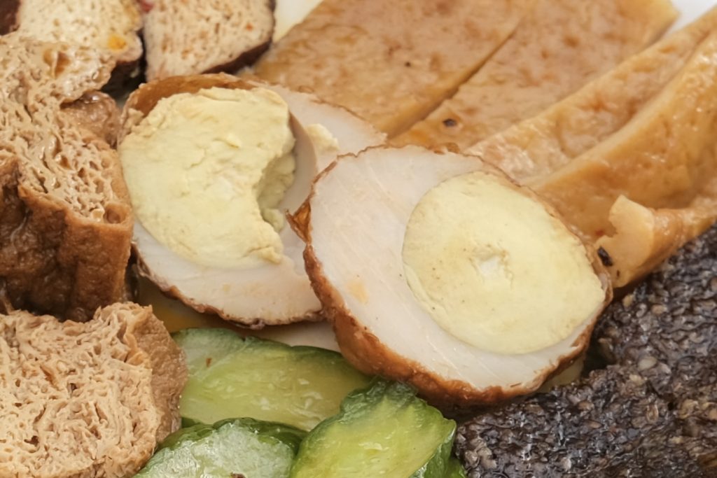▼除了豆干之外我也很喜歡這些 !~口感軟中帶Q的米血;旗魚黑輪片吃起來則是充滿嚼勁,會越咬越香!