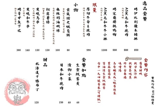 客觀炭火小料理 菜單