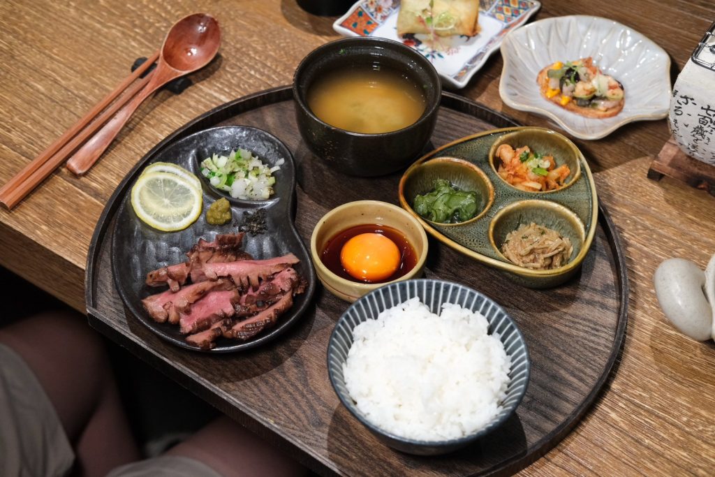 ▼以上餐點皆為套餐式的出餐模式,前菜的葡萄蝦、秋刀魚、牛舌春捲、日式蒸蛋、湯品,每一樣吃起來都超有水準,從擺盤到調味都能感受到認真不馬虎,另外套餐內附的芋香米,更是可以無限吃到飽的!