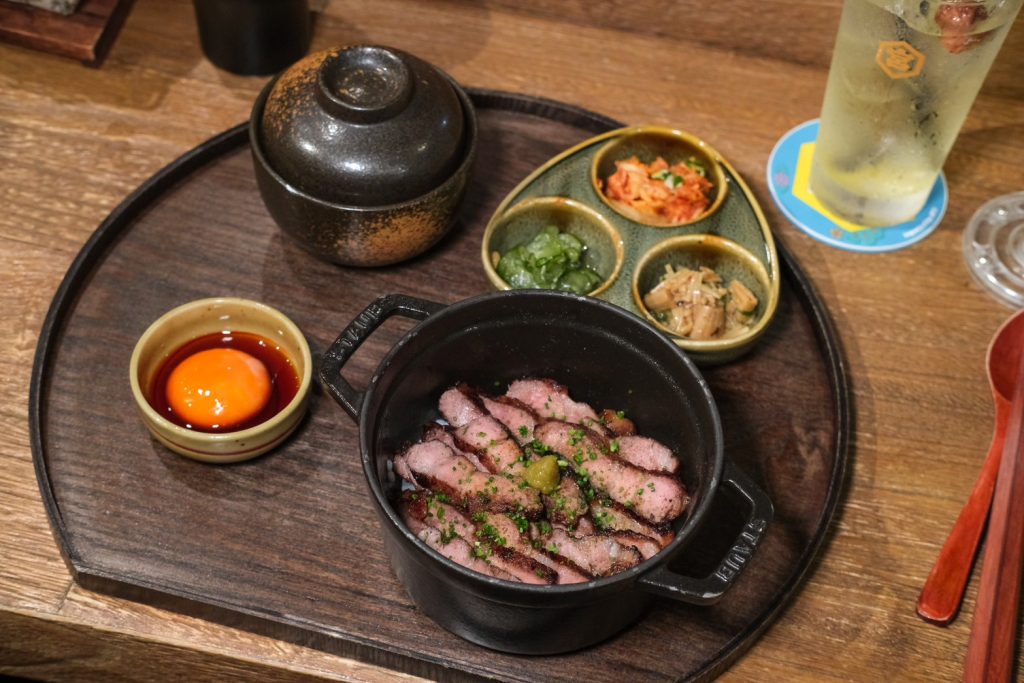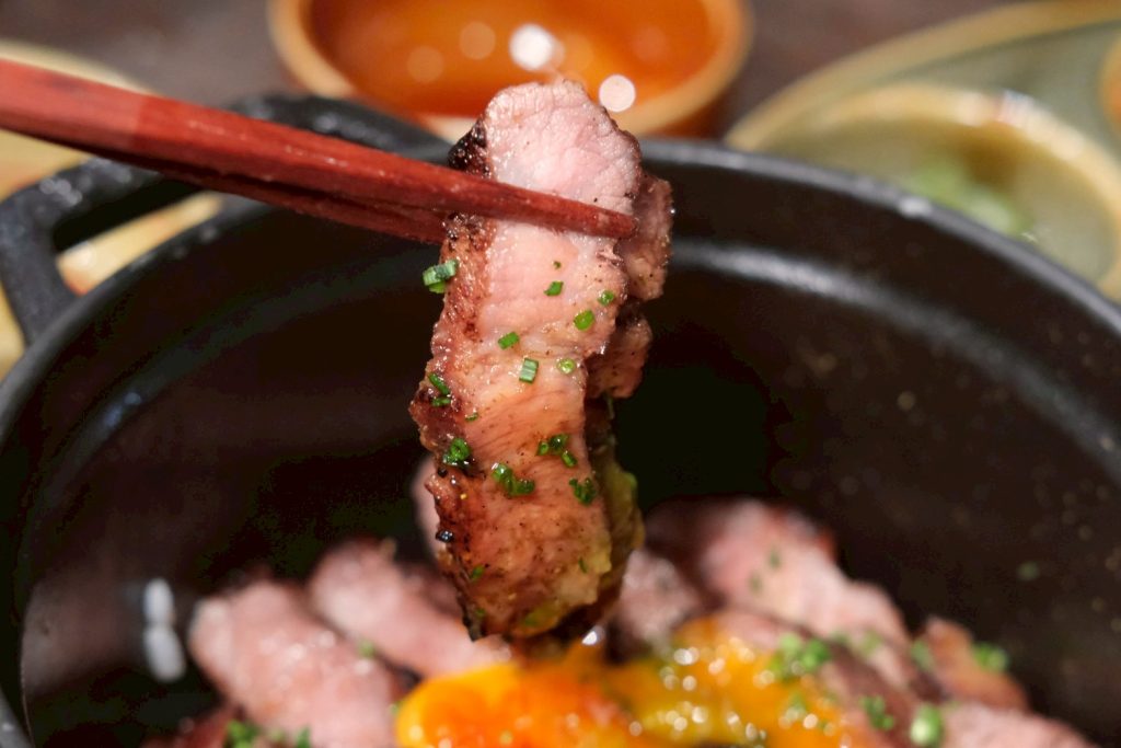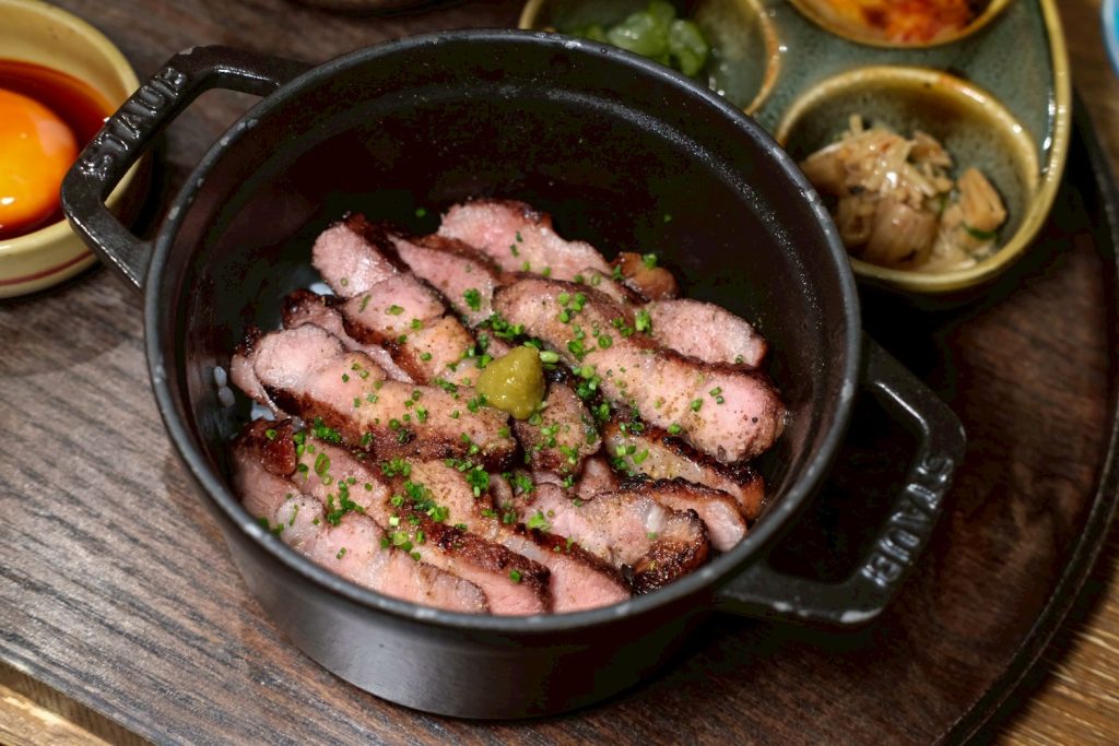 ▼超級香的烤伊比利橡木豬排套餐,吃起來完全不輸給和牛等級,肉質超級軟嫩,入口迷人的油香襲來,劃破生蛋黃後伴著享用,口感香氣也更加濃郁,不吃牛的朋友這款真的值得一試!