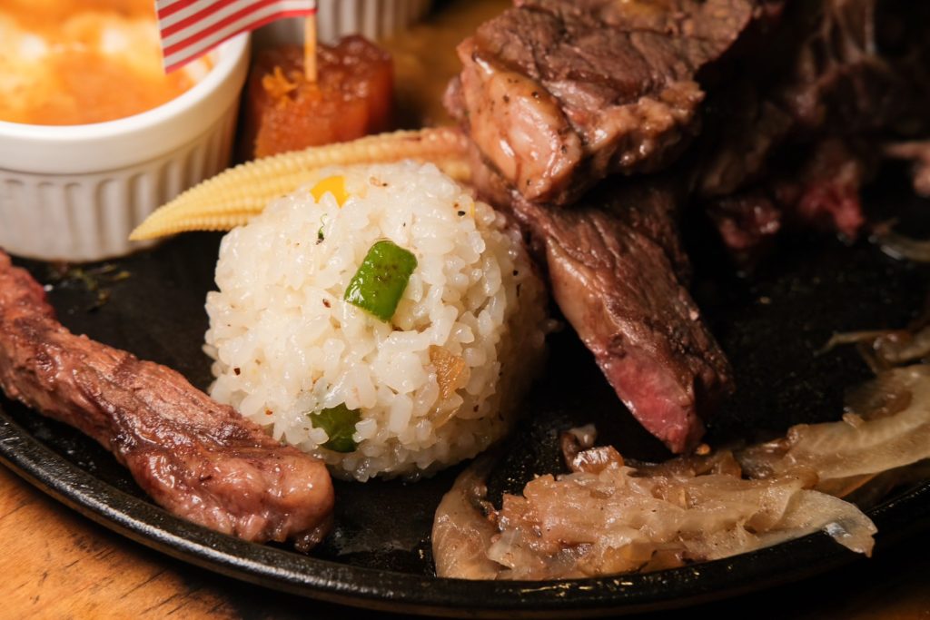 這家真的可以讓我再回訪~全台最強的排餐吃到飽【史堤克牛排】,最低只要310元起就能享受,當季水果、濃湯、薯條、羅宋湯 、飲品無限吃,特別的是附餐是蔬菜飯,私心推薦必點美國肋眼牛排,超浮誇比臉大尺寸有夠扯,超迷人的粉嫩色澤JUICY又爆汁,還會桌邊協助把油花切除,用爆出來的牛油來炒蔬菜飯,這一味吃完認真就回不去了!