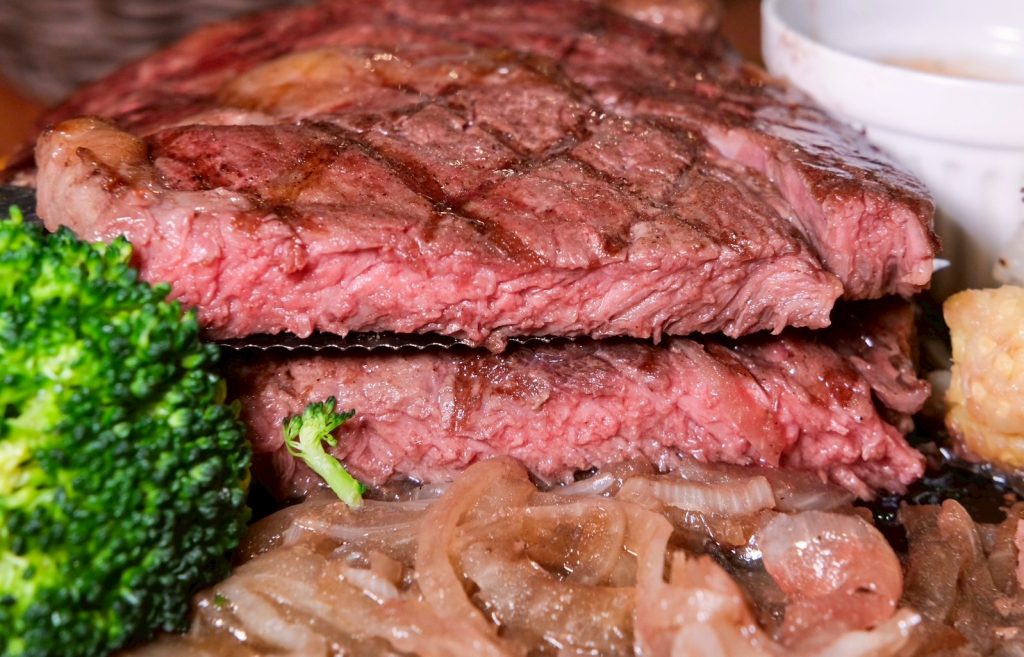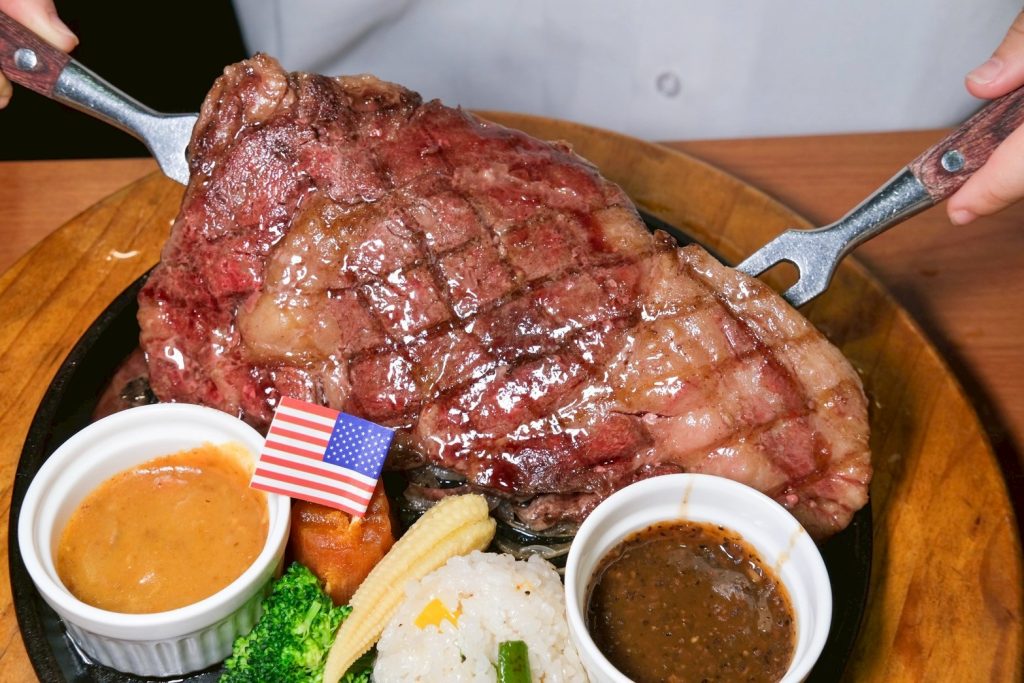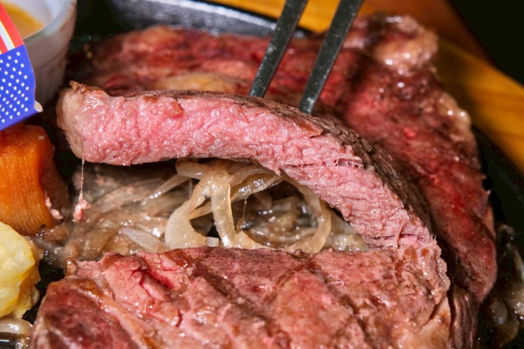 ▼超大塊的美國肋眼,尺寸幾乎要比臉還大了,一切開就能看到粉嫩的肉肉,咬下去JUICY又多汁~