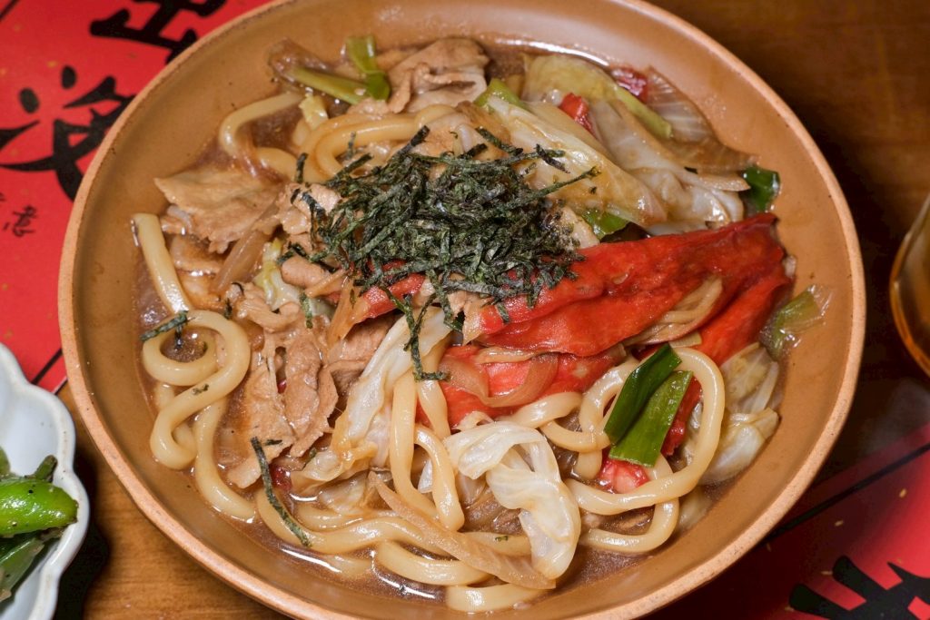 ▼這道海鮮烏龍麵有讓我驚艷欸,麵條吃起來超級彈牙,鹹甜鹹甜好涮嘴,還有超大蟹肉棒和肉肉,讓人大滿足!