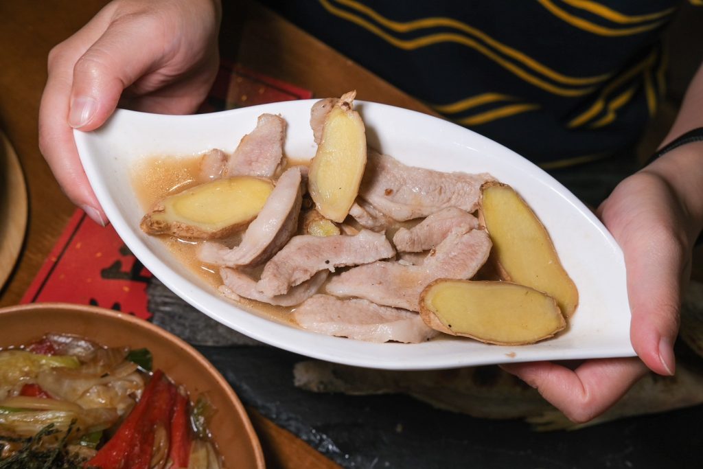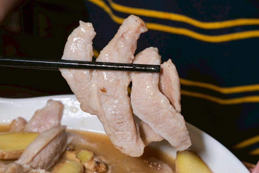 ▼香氣十足的麻油松阪豬,還沒吃就聞到明顯麻油香,伴隨Q彈大塊的松阪豬,每一口都是無比享受!