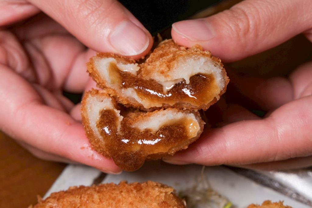 ▼甜點大推咬下會爆漿的黑糖流心糕,外酥內軟又香甜的滋味,上桌就馬上被嗑光光!