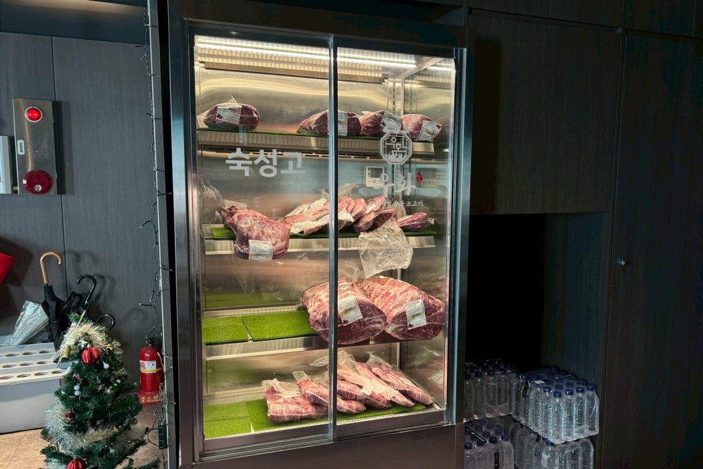 ▼冰櫃裡展示各種精品肉肉,店裡使用的「1++No.9」韓牛原塊肉,是韓牛中最頂級的選擇!
