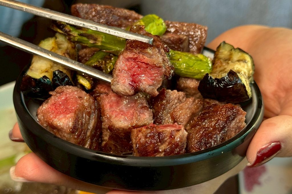 ▼綜合套餐有各種部位的韓牛,板腱肉、牛胸腹、牛里肌、牛肩肉、蝦型肉一次品嚐,烤到半生帶微紅的程度最完美,咬下去鮮嫩多汁不膩口,肉香在嘴裡直接噴發愛慘了!