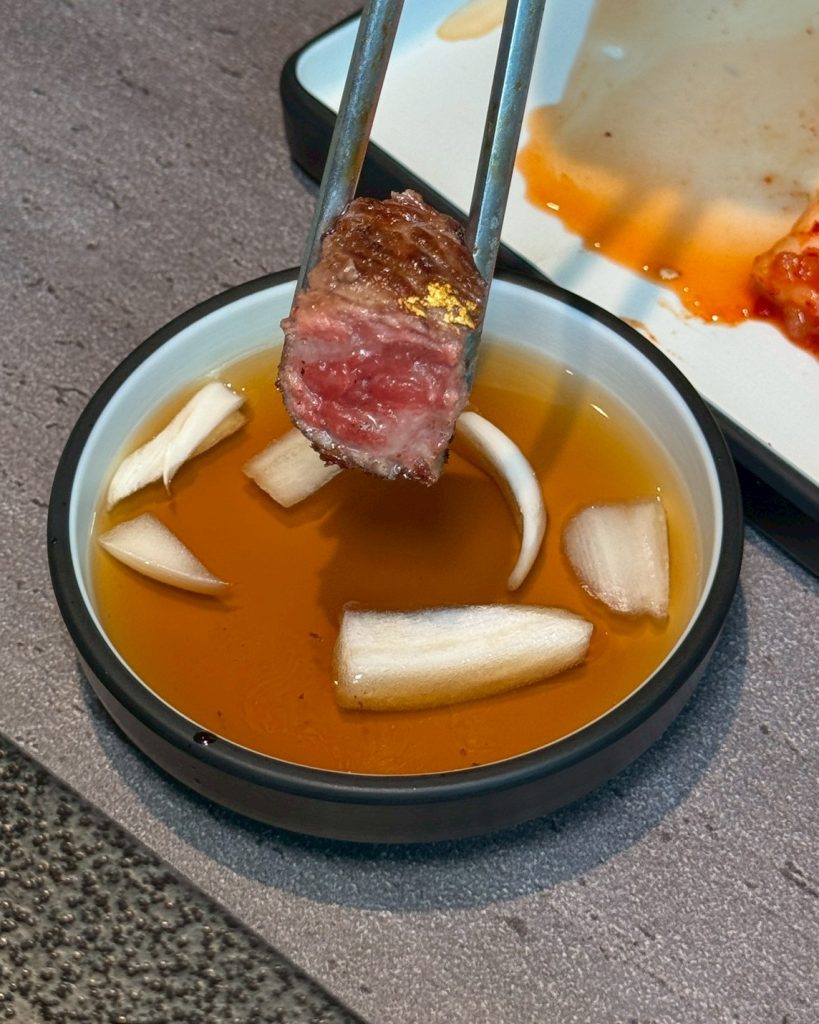 不然就是強迫要點兩人份才能用餐,在弘大發現這家燒肉(評價很高,主打1++等級的高水準韓牛,店內有提供中文菜單,還有小鮮肉全程代烤實在太快樂,是我自己想再二訪的店家清單!