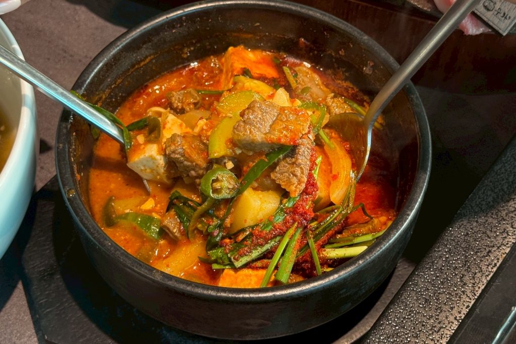 ▼1++韓牛大醬鍋裏頭也霸氣加入韓牛,這裡的大醬湯是濃稠的感覺,無論是香氣和風味都很厲害。