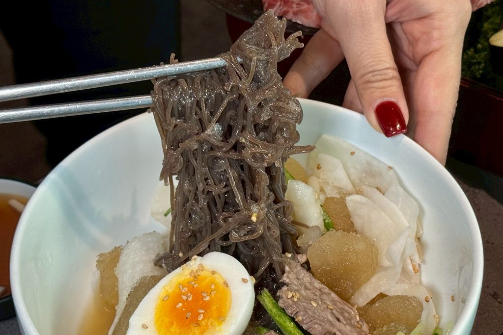 ▼韓國燒烤店必有的冷麵搭檔,居然也加入韓牛肉片會不會太扯,彈牙的麵條尬冰涼口感,讓人一口口停不下來~